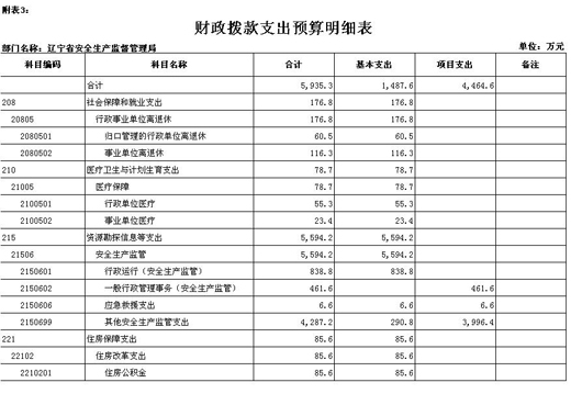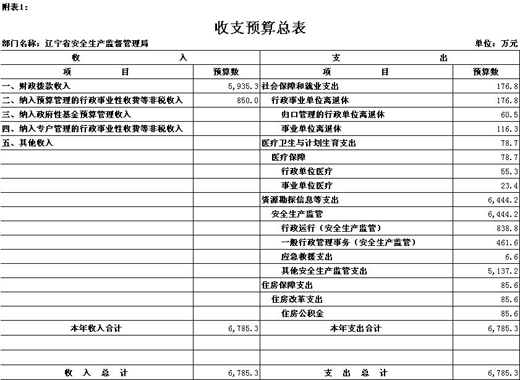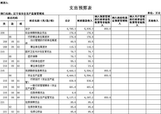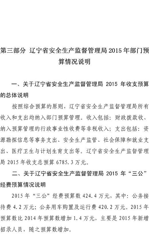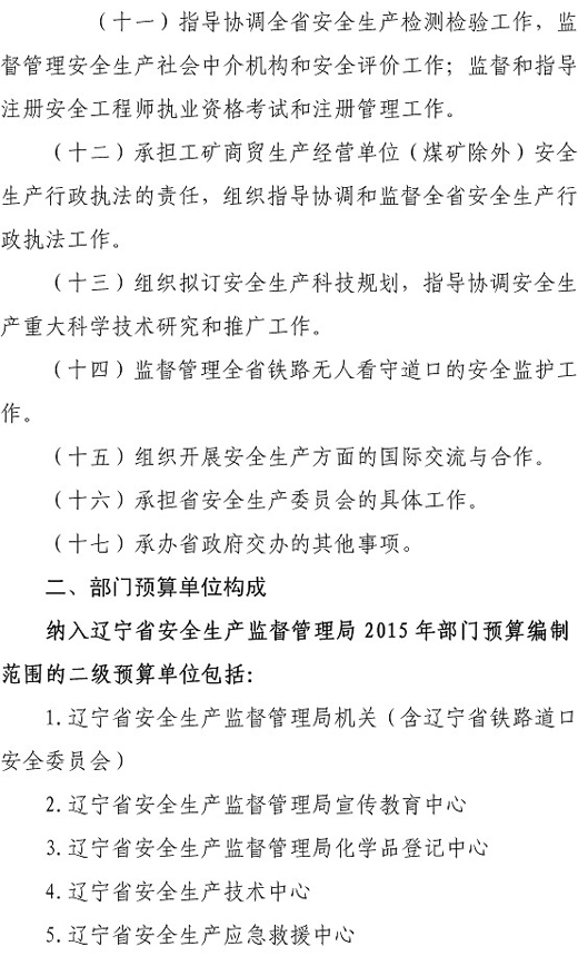 辽宁省安全生产监督管理局部门预算(2015)